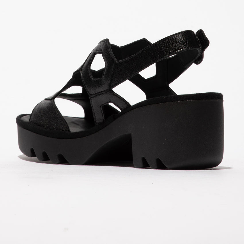 Fly London P501573001 Mousse Black Heeled Sandal