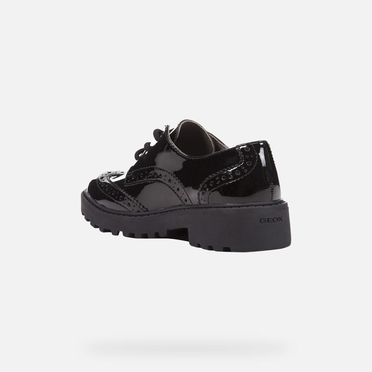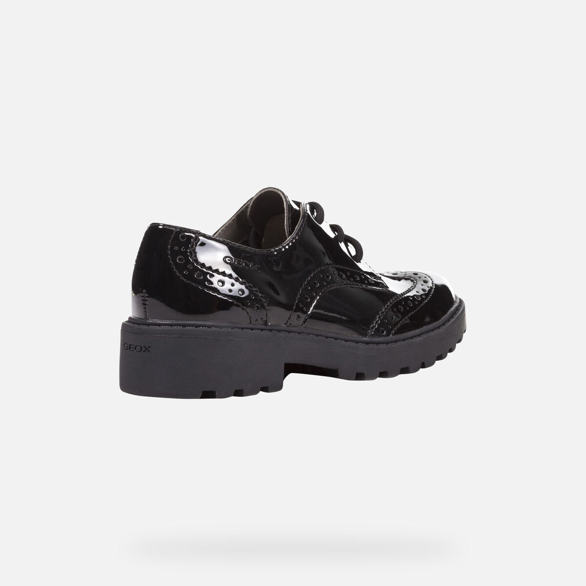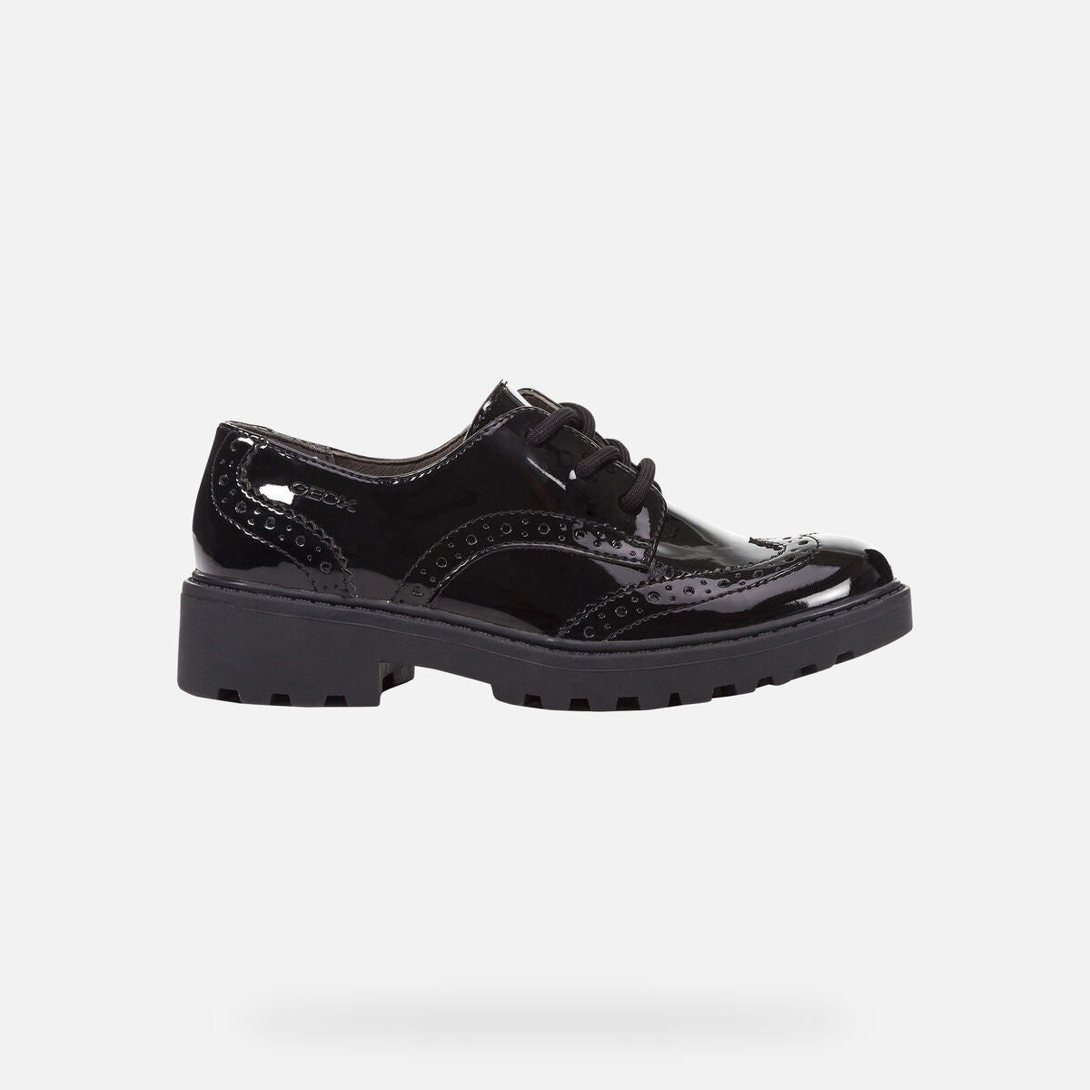 Casey by Geox is the perfect lace-up for everyday wear at school as well as for more elegant occasions. Impeccable yet versatile, it's crafted in black patent leather with a classic lace-up fastening and elegant Oxford details.