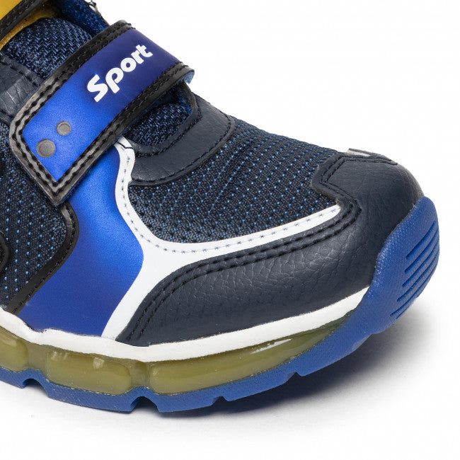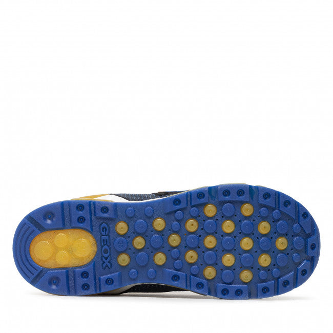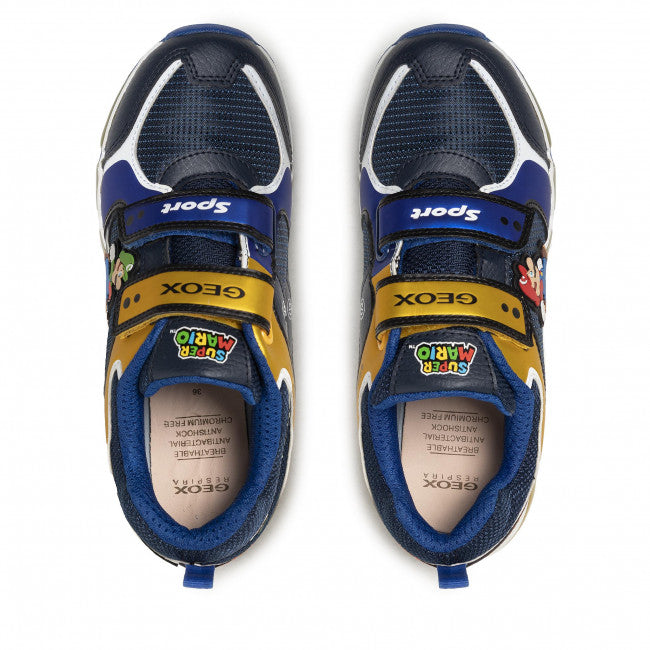 Junior's comfortable breathable sneaker dedicated to the most famous video game plumber in the world. Created for fans of Super Mario everywhere, the Android sneaker exudes spirited stylishness while ensuring a blissful sensation of well-being. It features an upper crafted from nylon and a leather-effect material in a royal-blue-and-yellow colourway. The lights built into the transparent outsole can be activated via the on/off switch on the upper and add an irresistible finishing touch.
