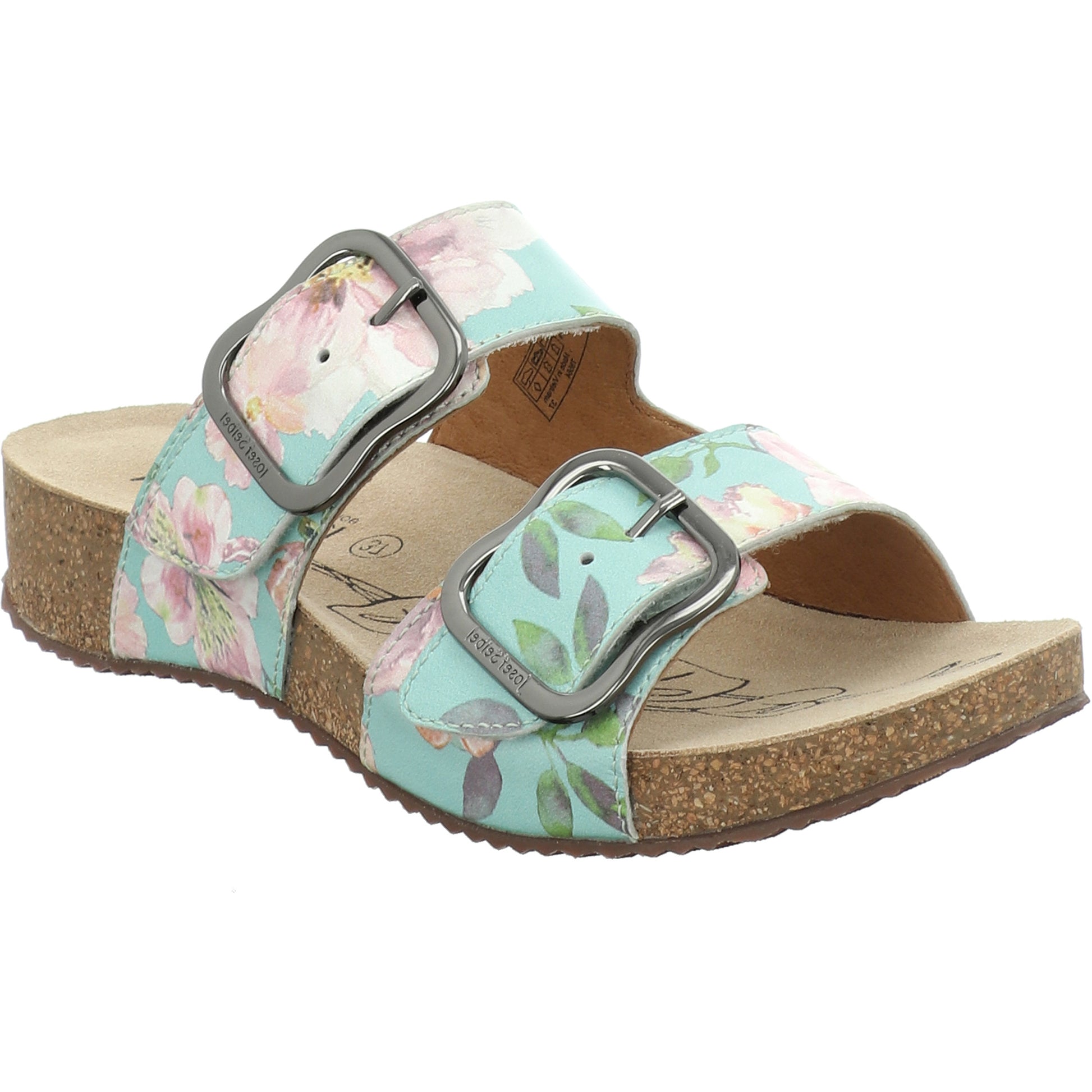 Josef Seibel Ladies Tonga 64 Mint Floral Leather Sandals 78564-244-610