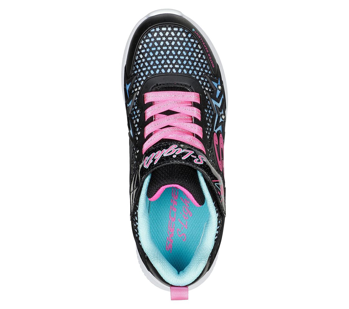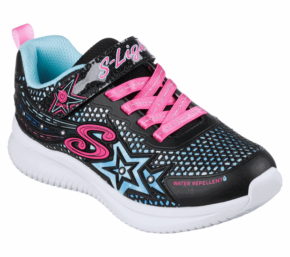 Bright and cheerful athletic style arrives in Skechers S-Lights: Jumpsters - Wishful Star. This water-resistant slip-on design features a durable synthetic and fabric upper with light-up details and a cushioned midsole.